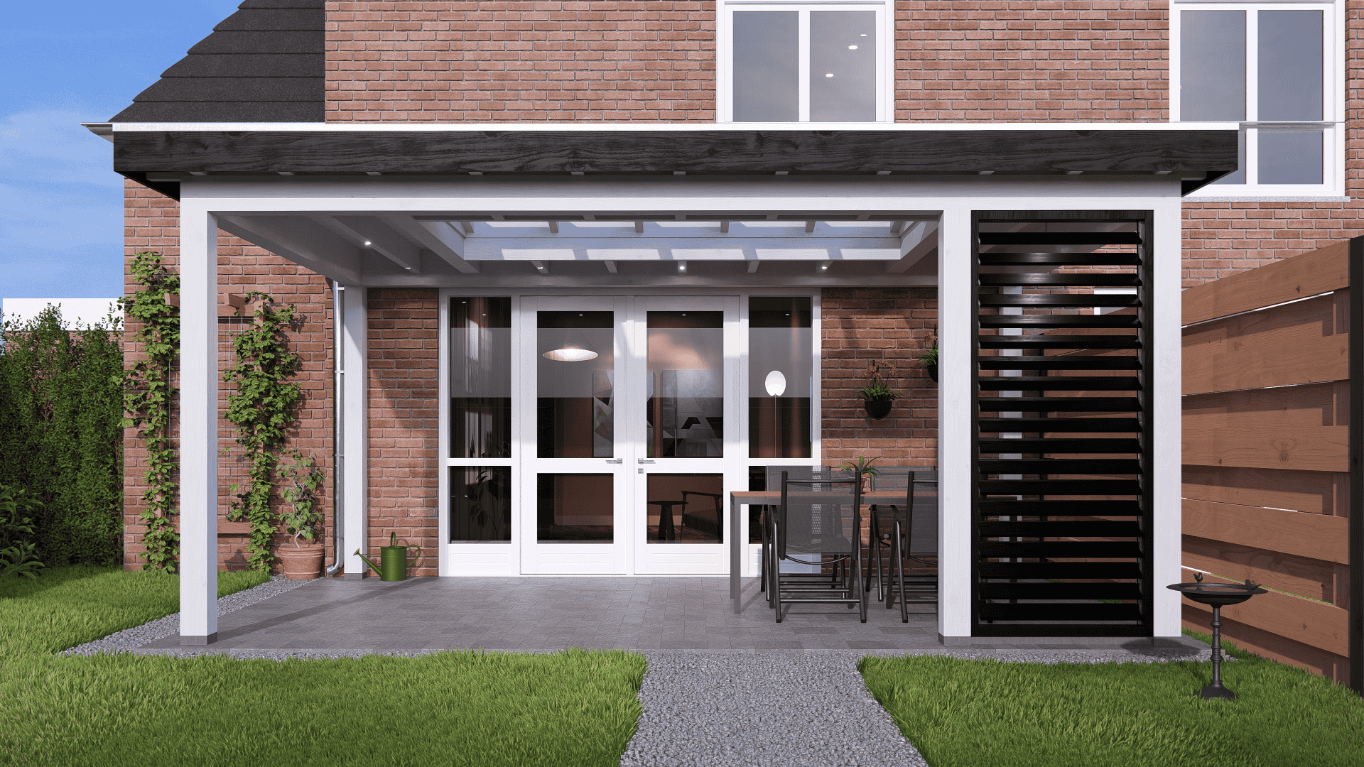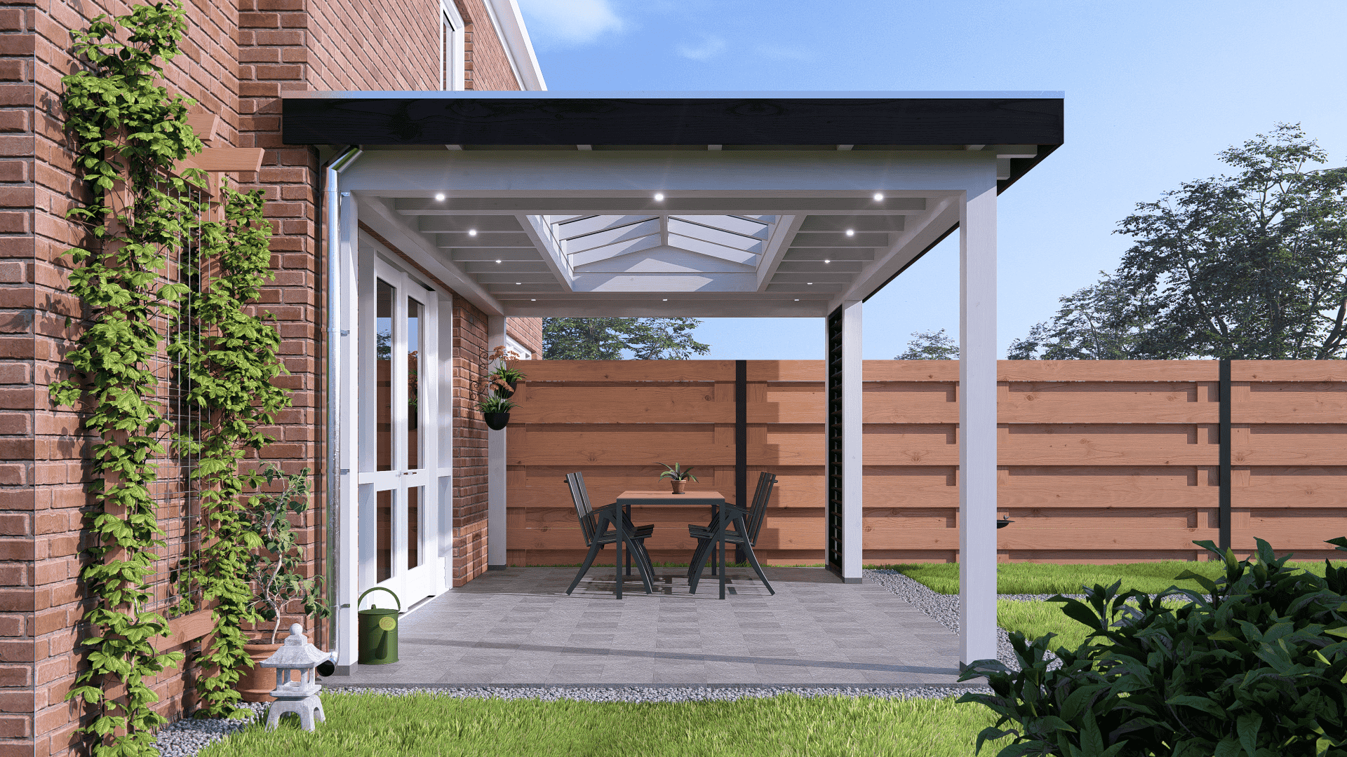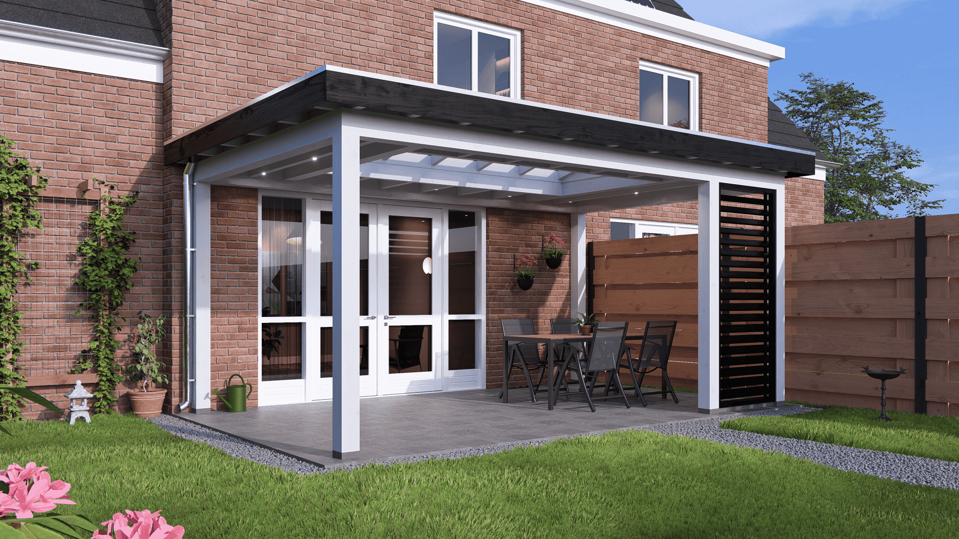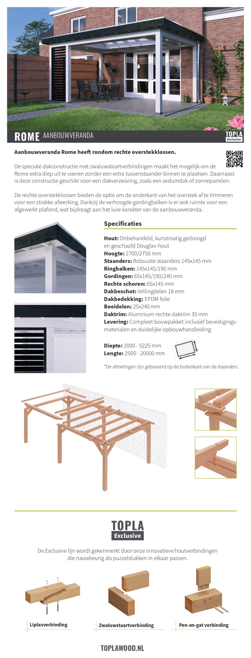 Verder kan er met de veranda Rome veel stijl variatie gemaakt worden. Door zijn typerende rechte klossen kan er gekozen worden om het overstek af te timmeren. In combinatie met prachtige steellook glaswanden, shutters of bijpassende schuifdeuren, maakt dit het buitenverblijf compleet.
