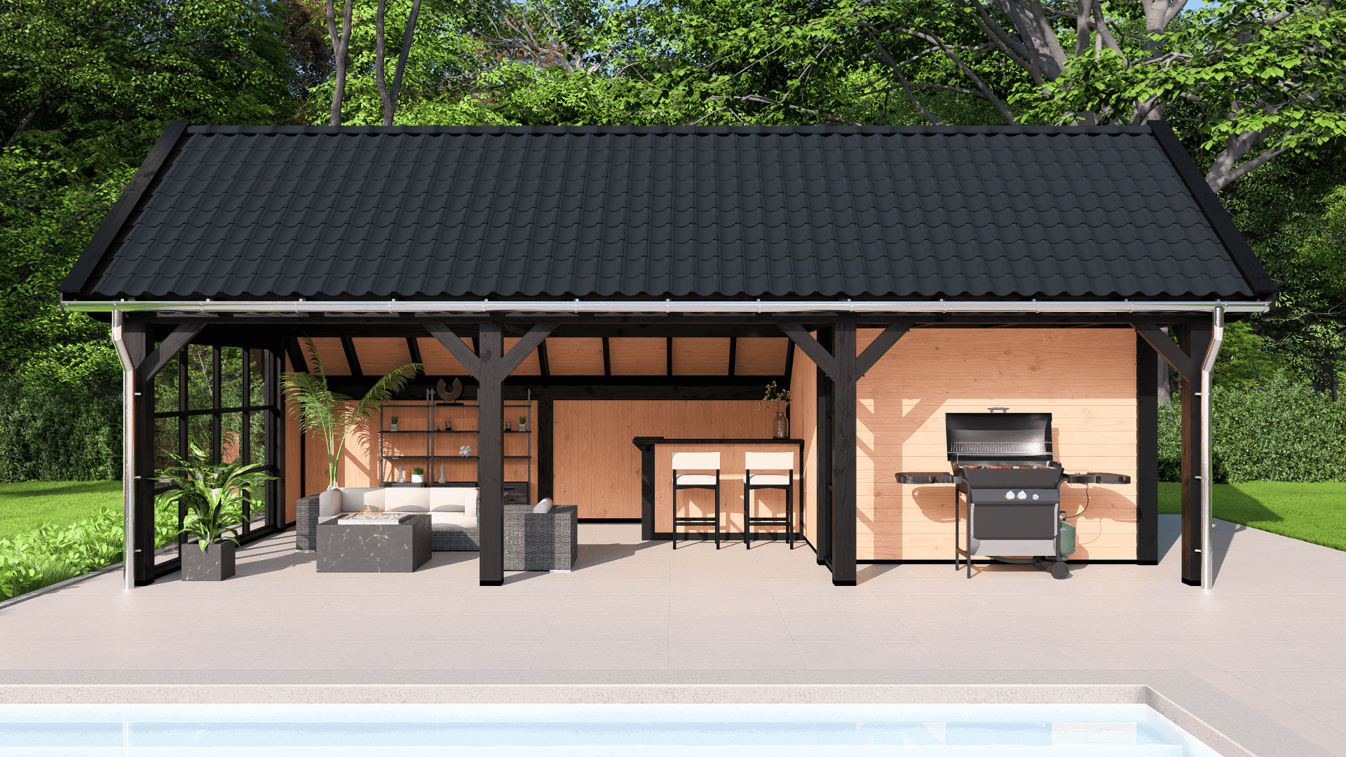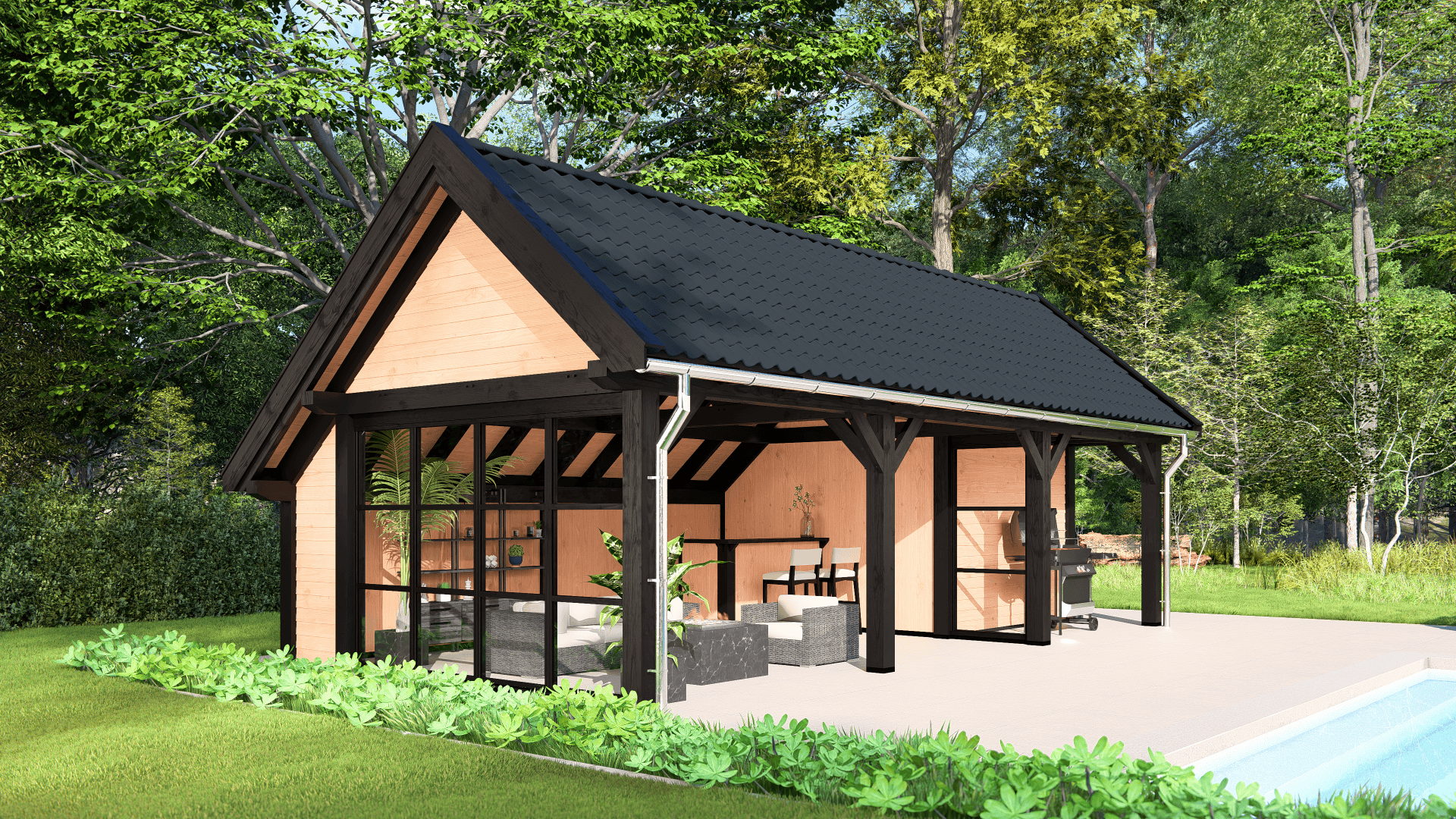 Daarnaast kan de kapschuur worden geleverd met Steellook glaswanden en -deuren, wat buitenverblijf Stockholm XXL een unieke uitstraling geeft.