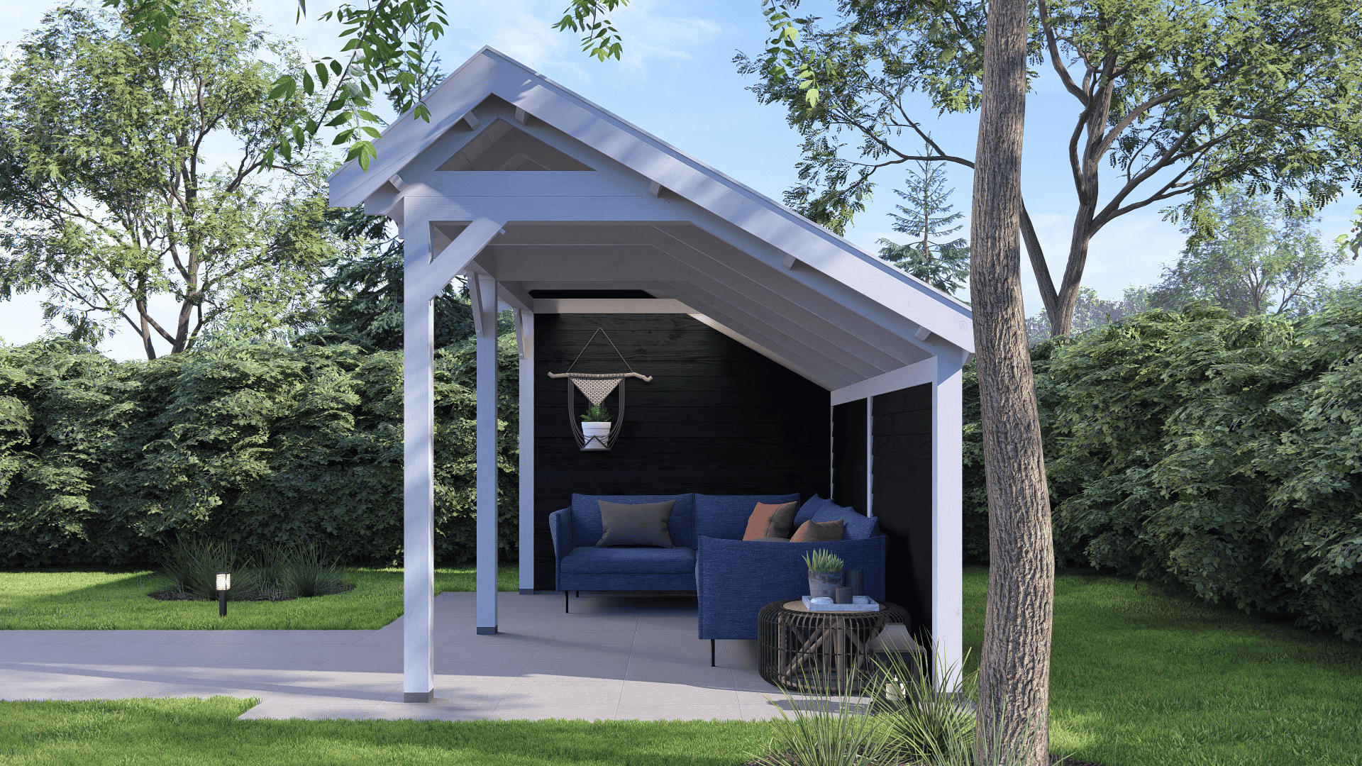 Buitenverblijf Praag is de enige kapschuur uit onze basic collectie. Het buitenverblijf combineert stijl en functionaliteit. Met zijn ongelijke dakvlakken en ruime overstekken biedt deze kapschuur praktische voordelen en een aantrekkelijke uitstraling. Kapschuur Praag heeft een ringbalk met een halfhoutverbinding en opliggende spoorliggers. Ook is het mogelijk om de voorgevelstaanders te verschuiven, zodat er eenvoudig een berging toegevoegd kan worden.