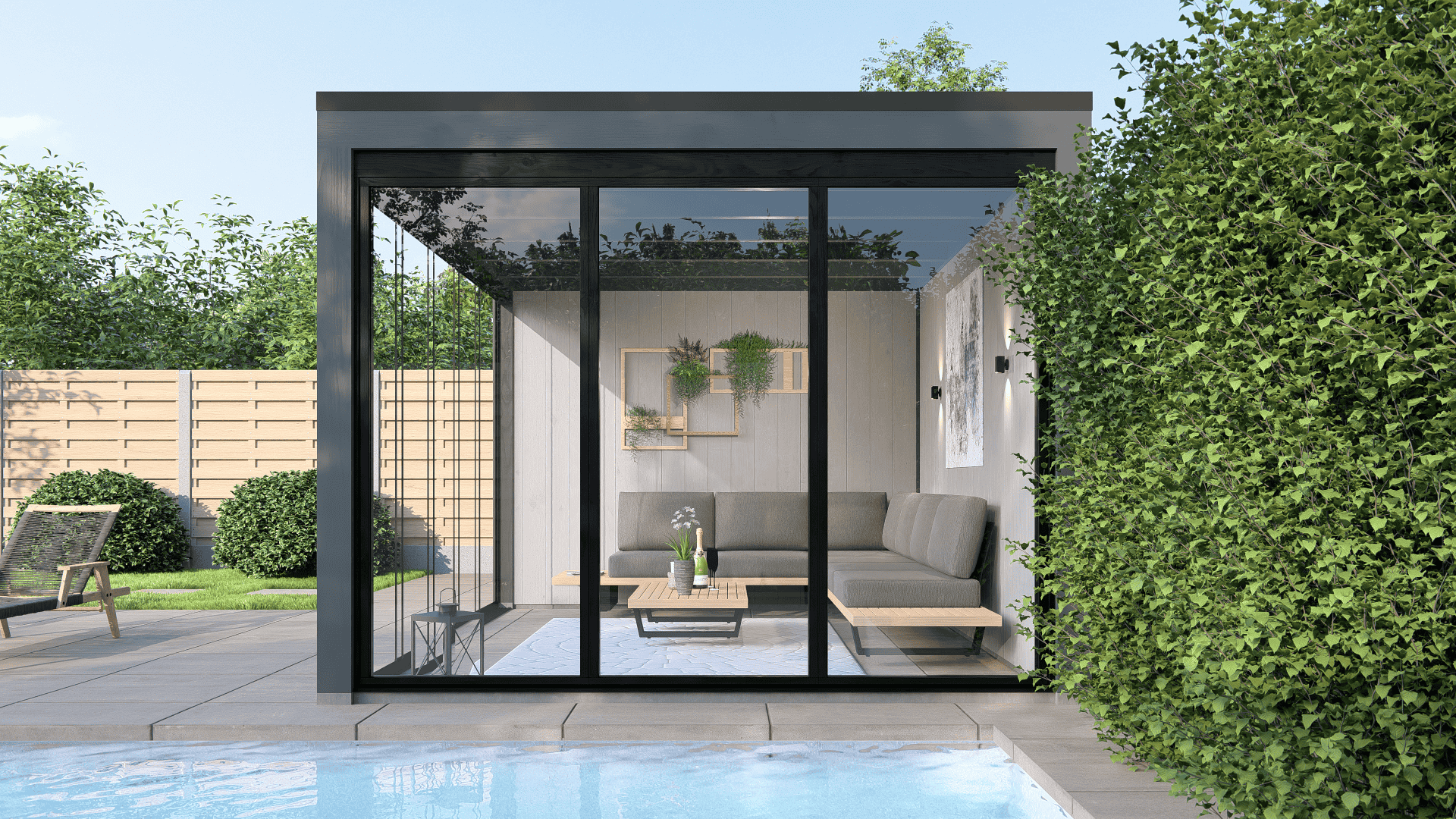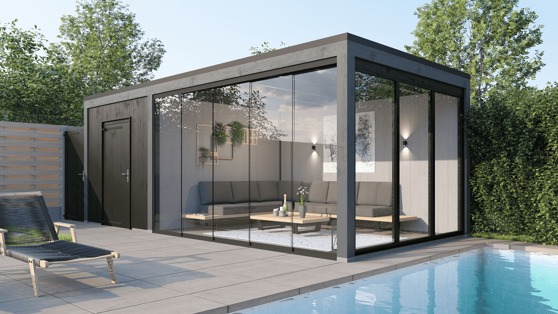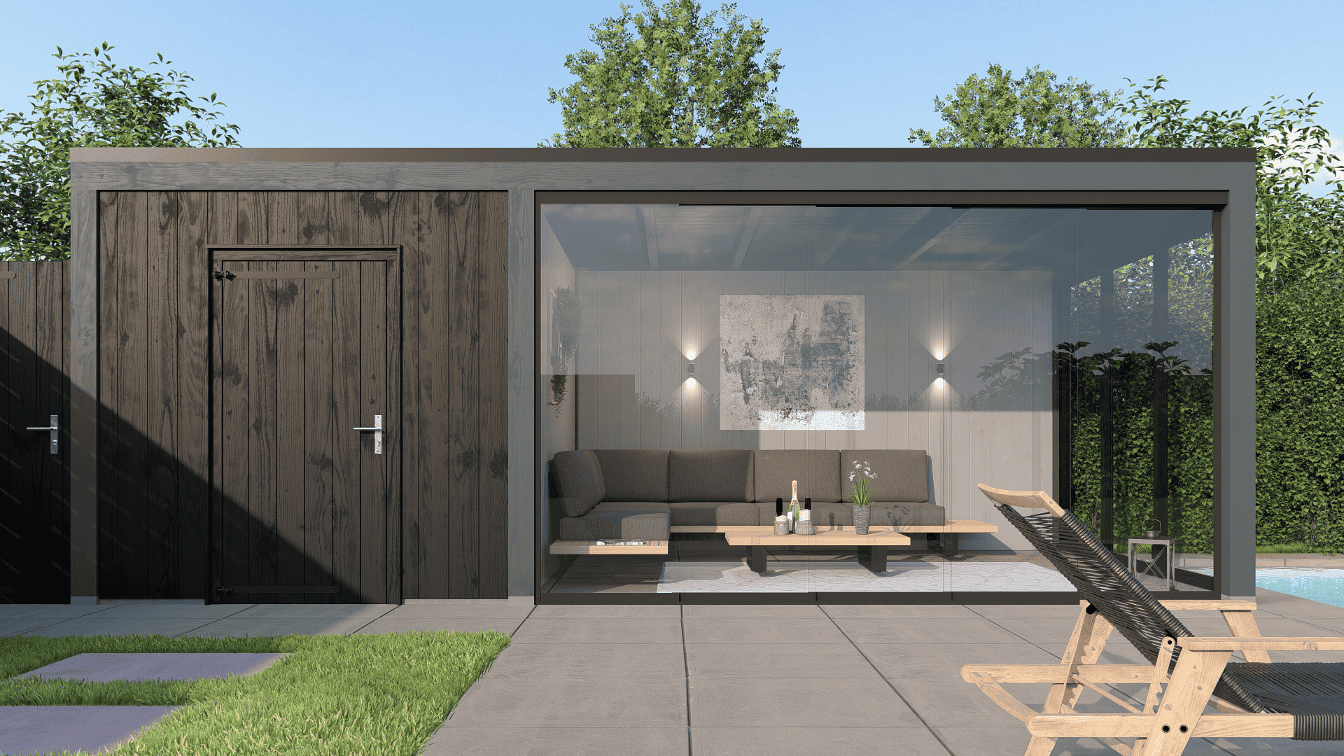 Door verschillende soorten wanden, ramen en deuren toe te voegen, kunt u het ontwerp verder personaliseren en optimaliseren naar uw wensen. Afgewerkt met een hoge zwarte daktrim is het strakke robuuste plaatje helemaal compleet.