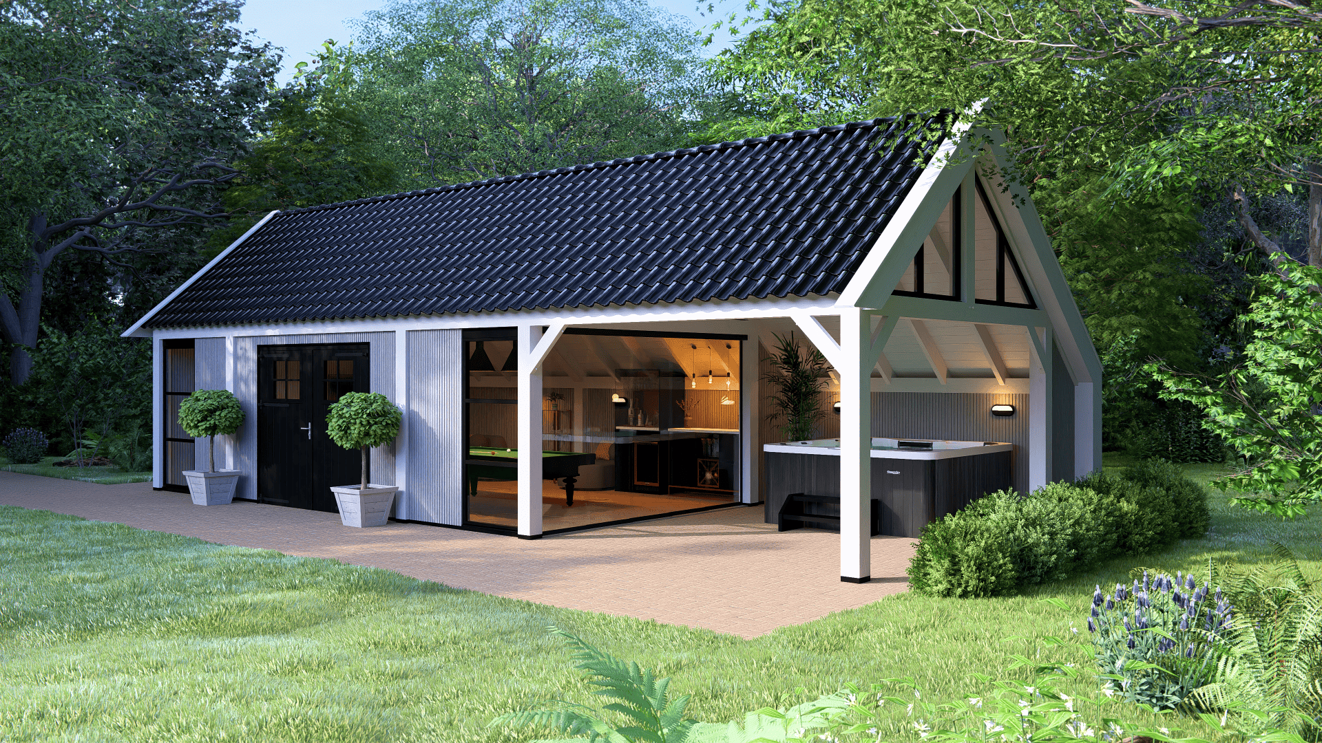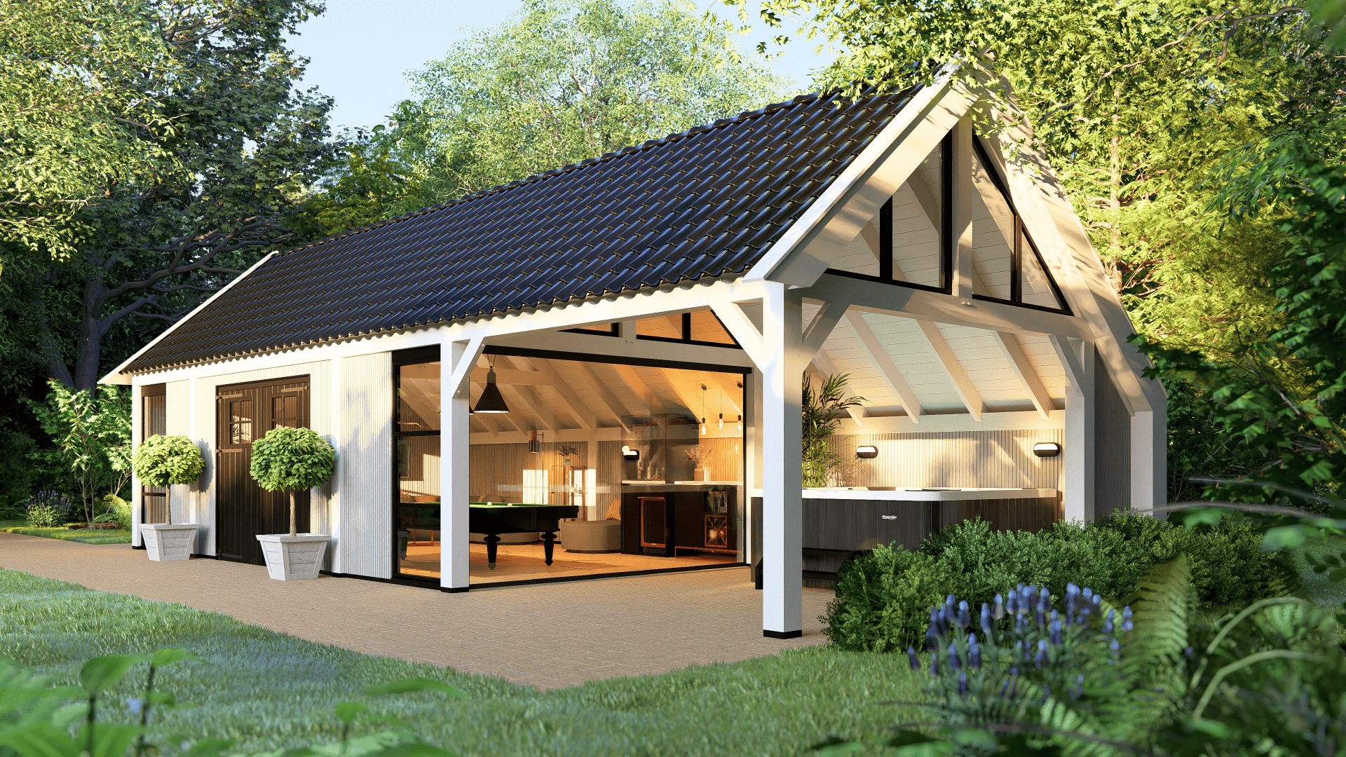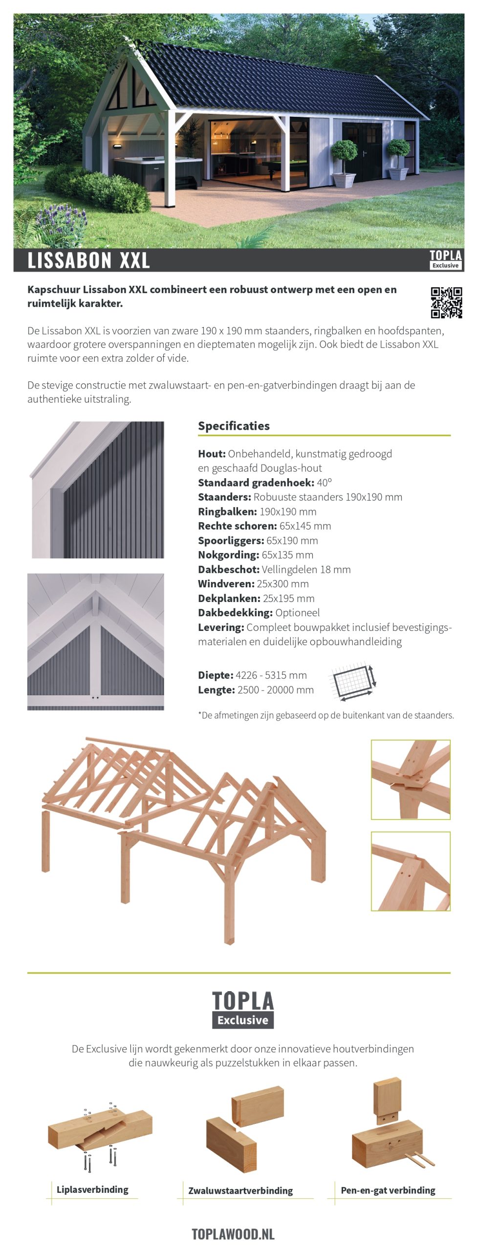 Dit moderne buitenverblijf Lissabon XXL is ideaal voor wie een eigentijdse en robuuste uitstraling wil combineren met praktische functionaliteit. Buitenverblijf Lissabon XXL beschikt over staanders en ringbalken van 190×190 mm, wat zorgt voor extra diepte ten opzichte van de reguliere Lissabon. De strak ontworpen kolommen aan de zijkanten dragen bij aan een elegante en verfijnde uitstraling.